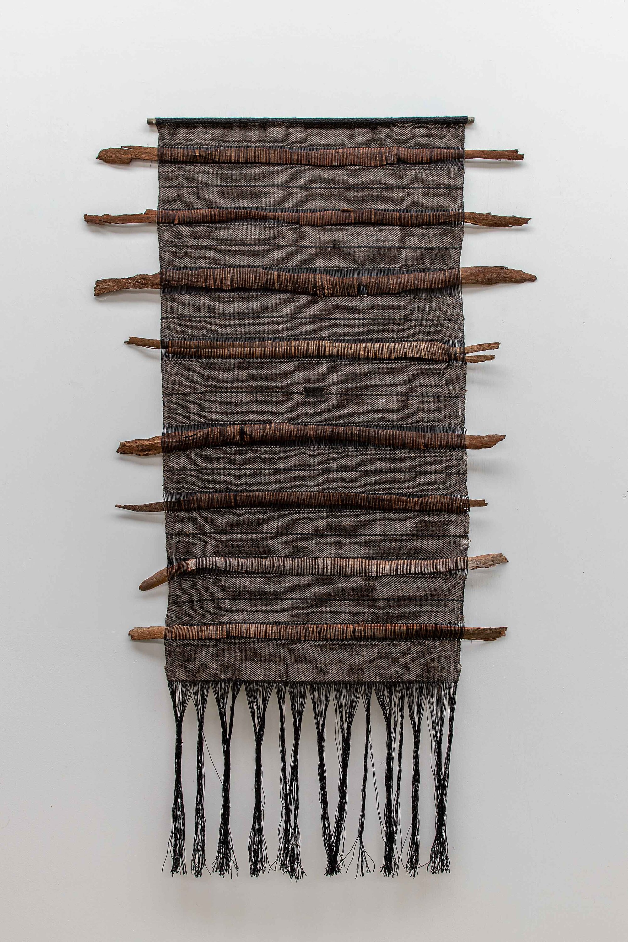 'The Wilds' looks at the contrast between the spontaneity of natural fibres, and the straight lines and geometric shapes created through the grid of the loom. A variety of materials have been foraged from the immediate surrounds, imbedding pieces with a strong connection to the land.