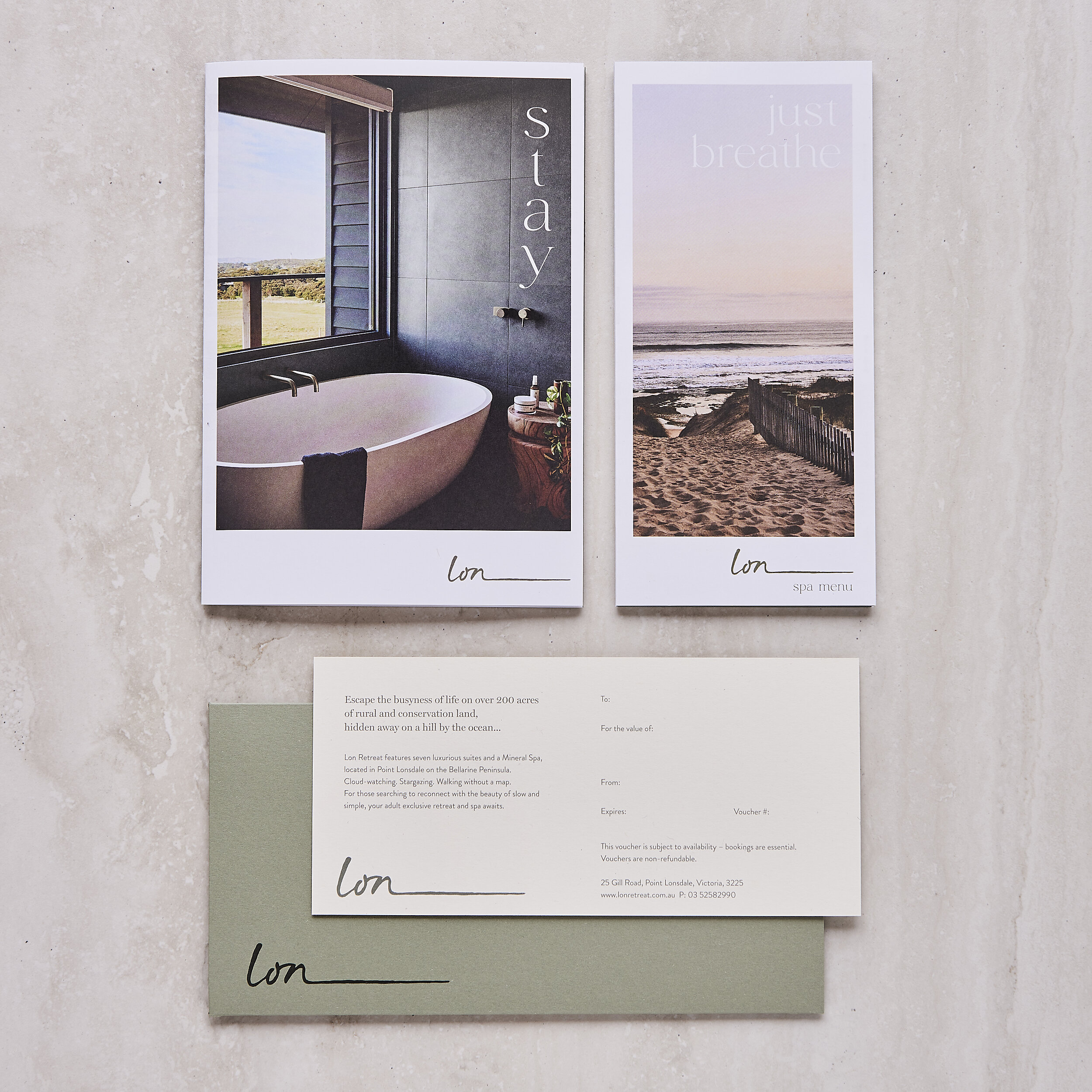 Lon Gift Vouchers can be exchanged for or used as payment for stays in our Hotel, treatments or products at Lon Spa, gifts in our Little Shop of Lon, art from our Lon Gallery or tickets to Lon Events. It may not be redeemed for cash, will not be replaced if lost and is non-transferrable. All bookings are subject to availability and must be made before the expiry date. No refunds.